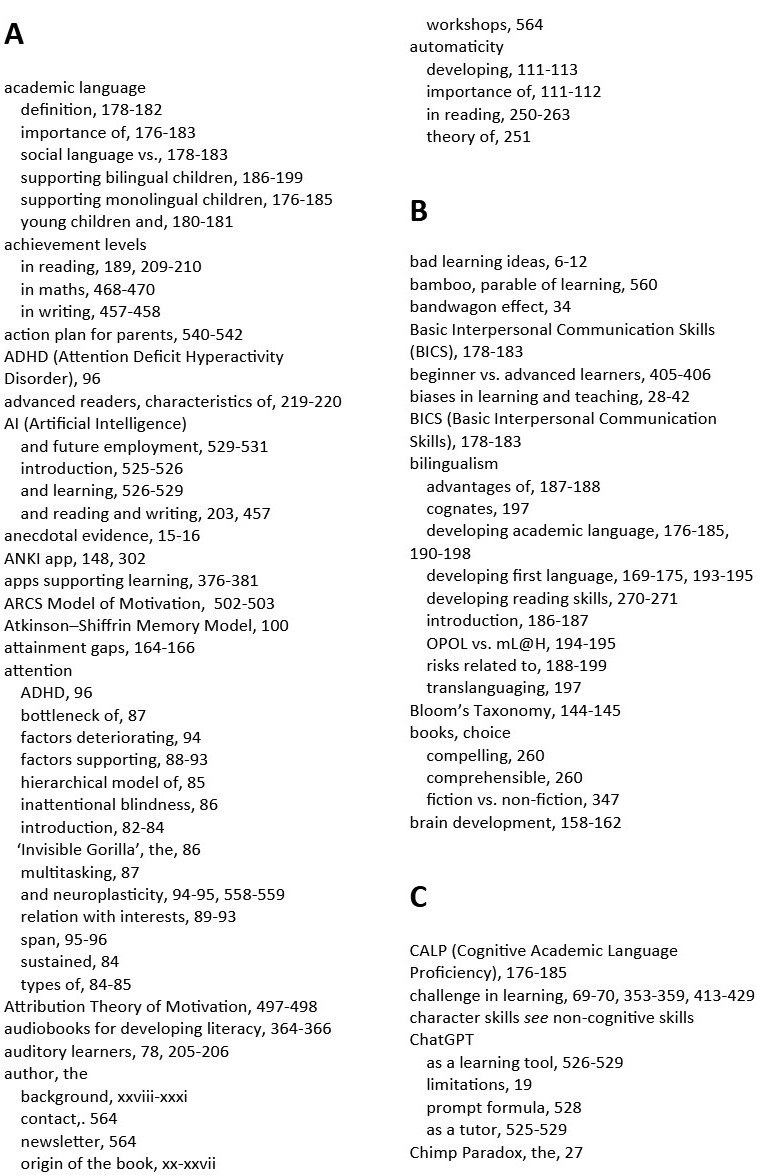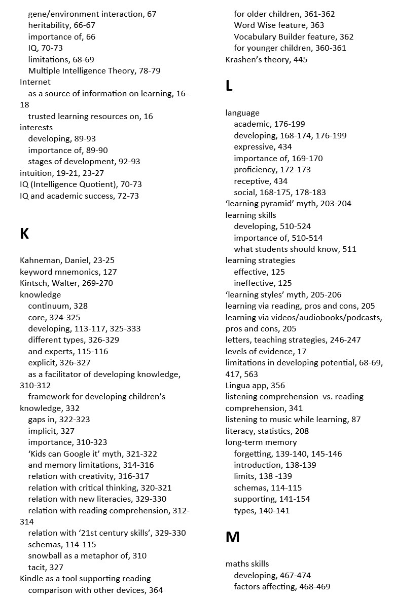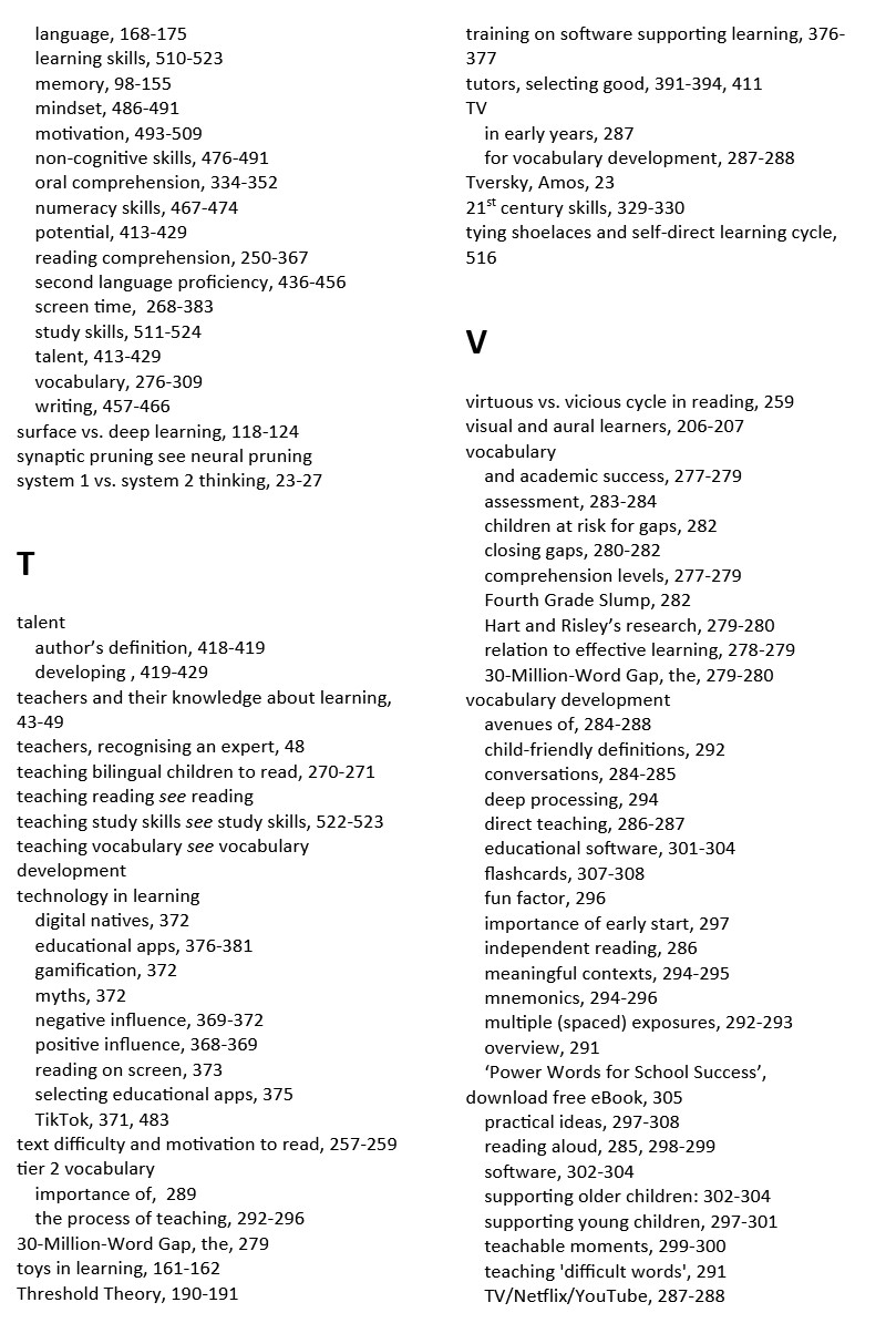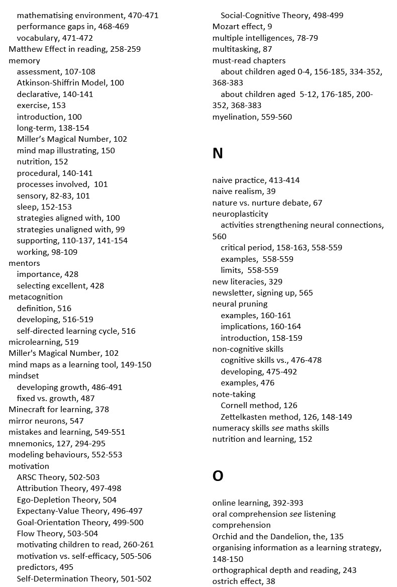 615 pages, 48 chapters, 300 illustrations, charts and tables, 1500 resources consulted. Covers all important aspects of children’s learning from ages 0 to 13+.